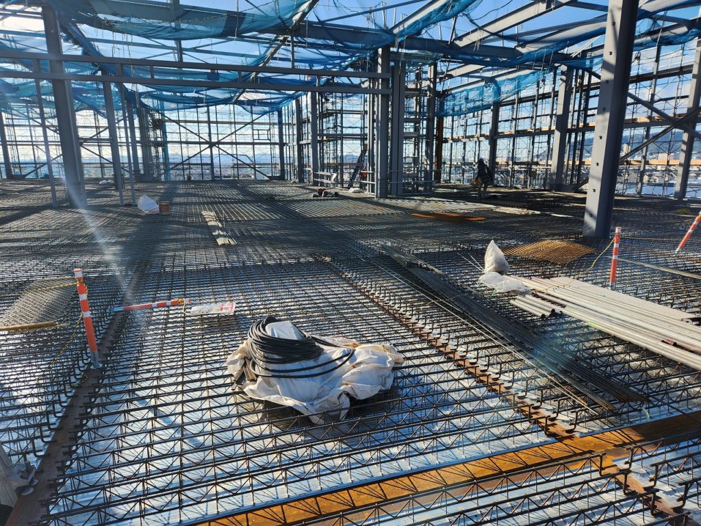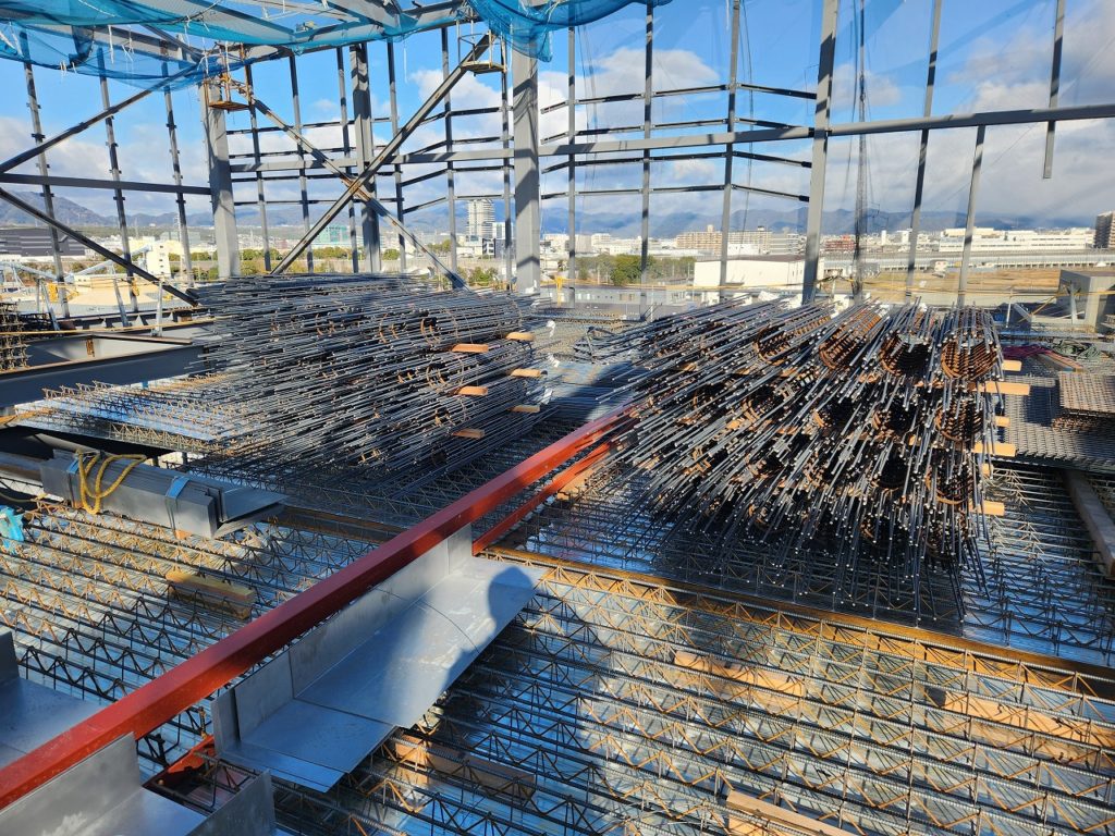 伏見の物流倉庫も 各階デッキスラブも半分配筋を終えました。